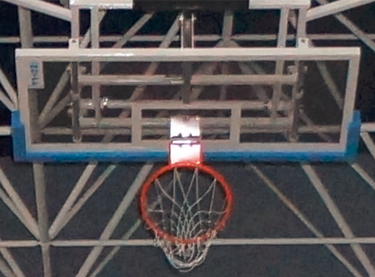Cushioned protector for the lower part of the mini-basketball backboard according to the dimensions established by the UNE-EN 1270 standard.