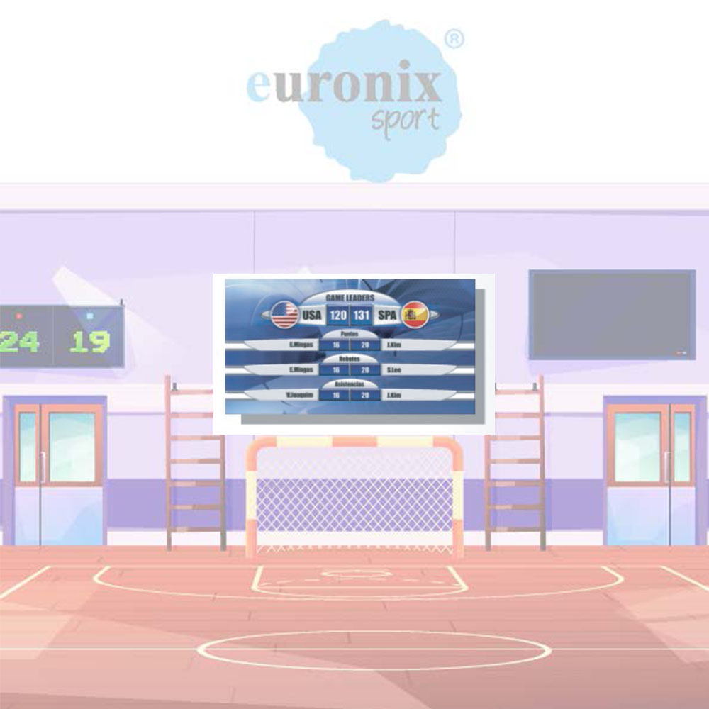 Pantalla de Leds full color para interiores de 4800 x 2880 mm, con leds de alto brillo y una distancia entre píxeles de 6 mm, para su uso como videomarcador y como pantalla de video.