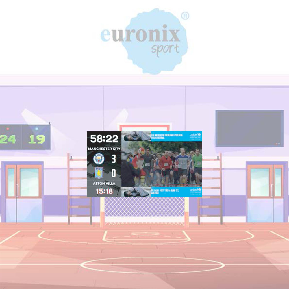 Pantalla de Leds full color para exteriores de 3840 x 1920 mm, con leds de alto brillo y una distancia entre píxeles de 8 mm, para su uso como videomarcador y como pantalla devideo.
